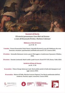 Un ciclo di incontri per scoprire ricerche e nuove pubblicazioni di storia, tra Medioevo, età moderna, Novecento e contemporaneità, si svolgerà fino a novembre presso la Biblioteca Città di Arezzo e l’Archivio di Stato.
