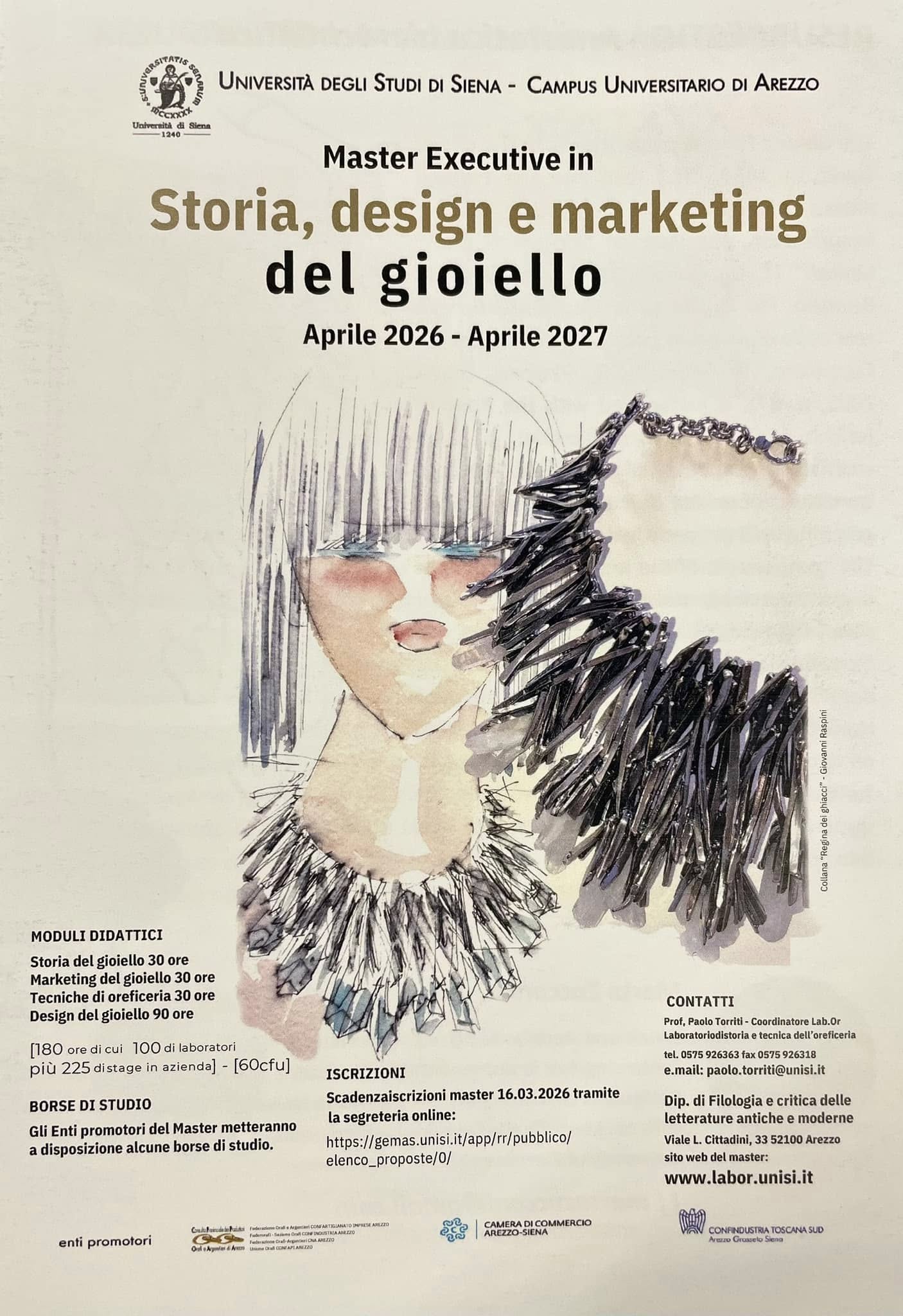Nell’ambito dell’offerta formativa post-laurea del Campus di Arezzo dell’Università di Siena, il master diretto da Paolo Torriti offre un’occasione di alta professionalizzazione in un settore di lunga tradizione nel territorio aretino, anche grazie alla collaborazione con il tessuto imprenditoriale orafo