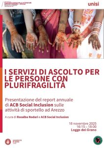 ACB Social Inclusion presenterà il suo primo report annuale sullo Sportello di ascolto territoriale ad Arezzo, realizzato con Rosalba Nodari, ricercatrice del Dipartimento di Filologia e critica delle letterature antiche e moderne dell’Università di Siena.