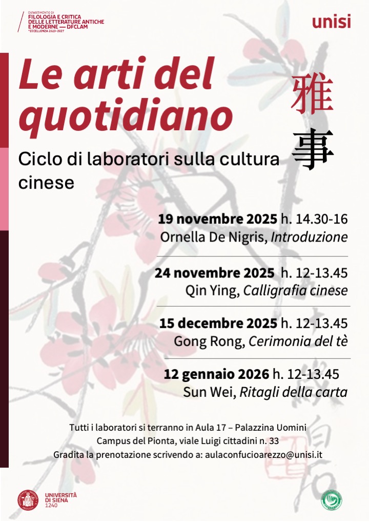 Gli incontri sono aperti a tutti, ma è gradita la prenotazione alla mail aulaconfucioarezzo@unisi.it